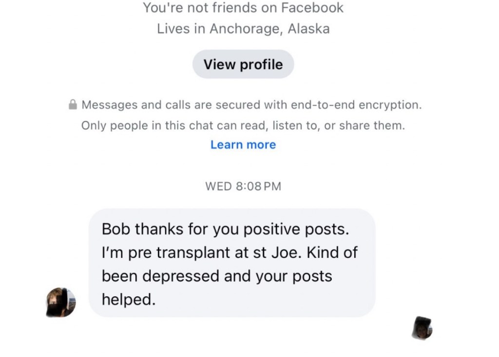 It’s amazing how the universe works. This message, from a lung transplant patient, had done for me exactly what she was thanking me for doing for her.